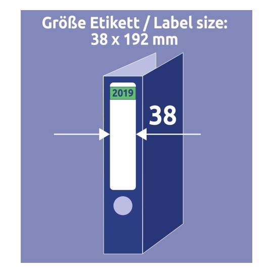 Etikety na pořadače, s letopočtem 38 x 192 mm, Inkoustová, Barevná laserová, Kopírka, Černobílá laserová