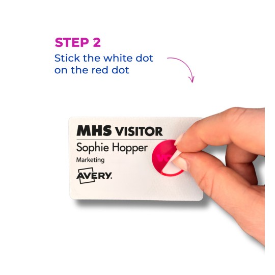 - First, apply the red adhesive dot, for example on the name tag