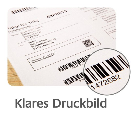 Bílé termotransferové etikety TT8060-76 v obdélníkovém formátu 103x199mm od Avery Zweckform jsou ideální cenově efektivní frankování zásilek sDHL a Hermes nebo pro značení výrobků nebo pro dlouhodobější aplikace. Etikety jsou potisknutelné standardními voskovými barvicími páskami. 1 role etiket se 600 štítky a s dutinkou o průměru 76mm. Speciálně vyvinuté lepidlo zajišťuje obzváště spolehlivou přilnavost termotransferových etiket k obalovým materiálům a kartonu. Díky vysoce kvalitnímu papírovému materiálu jsou kontury tisku ostré a výsledný obraz čistý. Bezporuchový provoz na různých termo tiskárnách. Samolepicí etikety pro nepřímý termotransferový tisk s vnějším průměrem max. 170mm jsou vhodné pro stolní tiskárny od: Zebra, TSC, Datamax/Oneil, Bixolon, cab, sato, intermec, citizen.