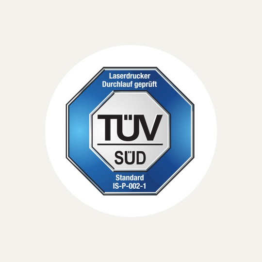 Etikety jsou vhodné pro všechny běžné laserové a inkoustové tiskárny; bezproblémový tisk na laserových tiskárnách byl testován a potvrzen společností TÜV SÜD